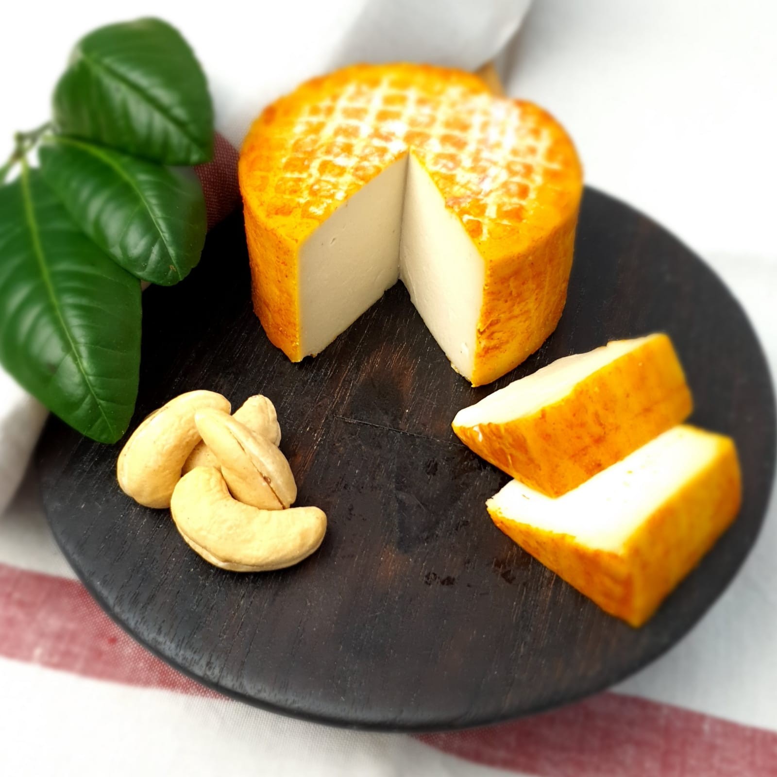 Ingredientes: castanha de caju, água filtrada, sal marinho integral, bétula, urucum, culturas de fermentação e maturação.